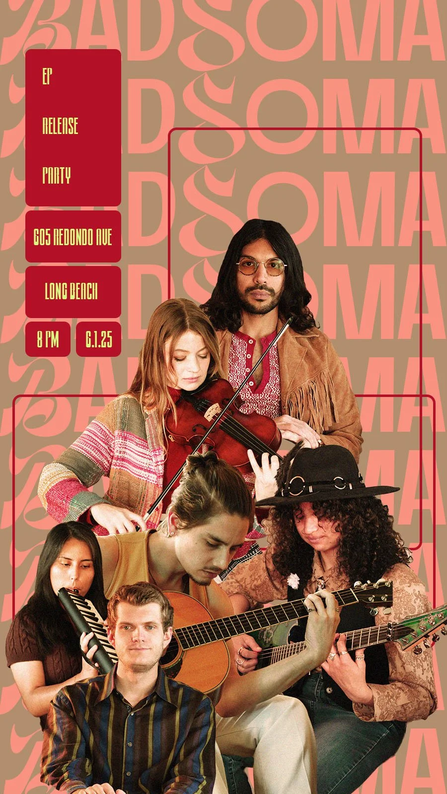For the release of Badsoma’s 2025 self-titled EP I created a suite of social media assets and merchandise designs leveraging photography from our photo shoot. I combined stylish type and graphic elements to convey the youthful, yet eclectic brand sensibility of the band and provided them with a package of images that balance variety with visual consistency.
